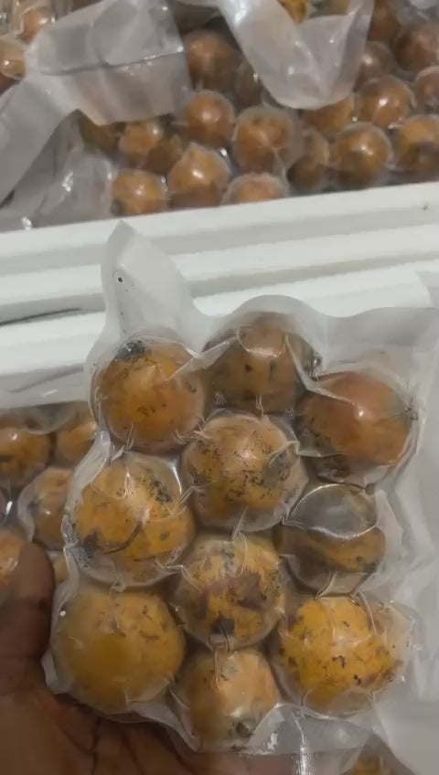 Please note that this product departs frozen and will not have the yellow color with which it left Nigeria. The back will be slightly brown but best believe that the inside is as sweet as your childhood memories.